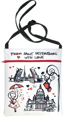 Сувенир, Сумка текстильная для документов From SPb with love, цв.белый 109-2-W-04-05-eng