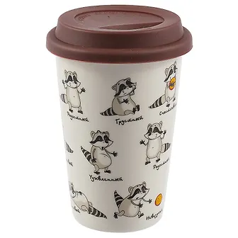 Керамический стакан станет отличным подарком для человека, ценящего забавные и практичные подарки. Силиконовая крышка долго сохраняет тепло.