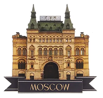 Изящный деревянный магнит с изображением ГУМа — лаконичный и душевный сувенир, который сохранит память о главной торговой галерее столицы и украсит любое металлическое покрытие.