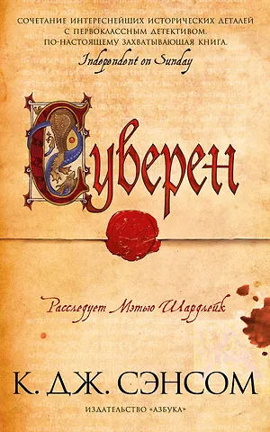 Большой плюс детективов о Мэтью Шадерлейке в том, что прочитав серию волей неволей начнете понимать эпоху Генриха VIII, роль личности короля и его личной жизни во всех религиозных и политических перипетиях государства. В данной книге подробно описан крупнейший английский город Йорк в противовес обычным лондонским описаниям в других книгах серии. Жутковатые события, описанные в Суверене, приведут к остросюжетному столкновению характеров. Прочитано с удовольствием.