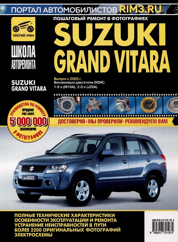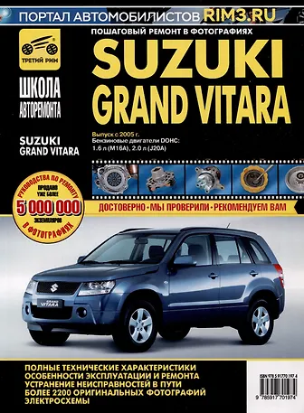 В руководстве дается пошаговое описание процедур по эксплуатации, ремонту и техническому обслуживанию переднеприводных и полноприводных автомобилей Suzuki Grand Vitara с 2005 г. выпуска, оборудованных двигателями М16А (1,6л, DOHC), J20A (2,0 л, DOHC).