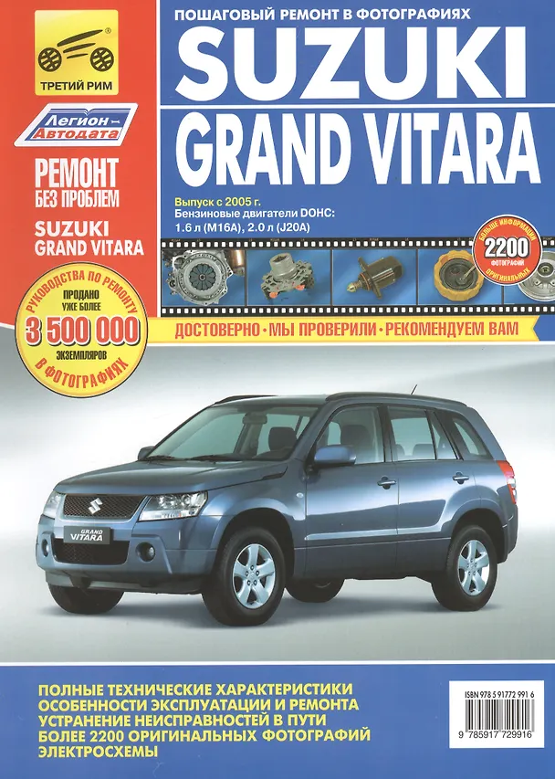 В руководстве дается пошаговое описание процедур по эксплуатации, ремонту и техническому обслуживанию переднеприводных и полноприводных автомобилей Suzuki Grand Vitara с 2005 г. выпуска, оборудованных двигателями М16А (1,6л DOHC), J20A (2,0nDOHC).