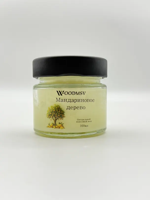 Эксклюзивная ароматическая свеча ручной работы WOODMSV сделана из натурального кокосового воска и сертифицированных, безопасных, гипоаллергенных отдушек. В комплект входит: стеклянная тара с чёрной матовой крышкой, деревянный фитиль, инструкция в виде наклейки на самой таре.