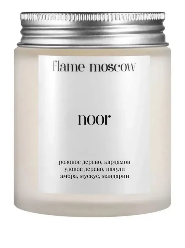 Свеча ароматическая Noor (Розовое дерево,Кардамон,Удовое дерево,Пачули,Амбра,Мускус,Мандарин) (110мл) (flame-MC033)