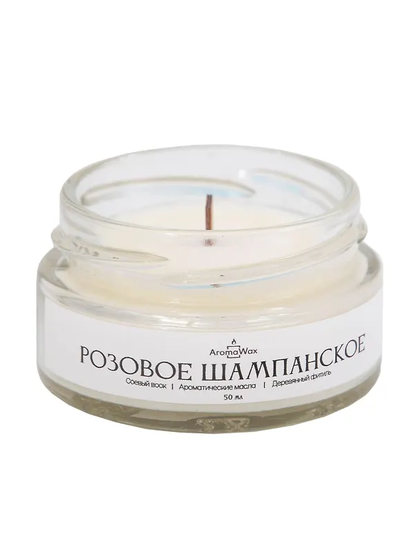 Объём: 50 мл — оптимален для небольших помещений и пробного знакомства с ароматом. Аромат: «Розовое шампанское» — тонкий, свежий, с фруктово‑цветочными нотами и лёгким игристым шлейфом. Время горения: до 10 часов — обеспечивает длительное наслаждение ароматом и мягким светом. Материал: кокосовый воск — экологичен, горит чисто и равномерно, не выделяет вредных веществ. Фитиль: деревян