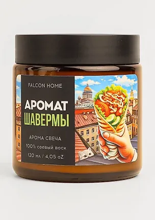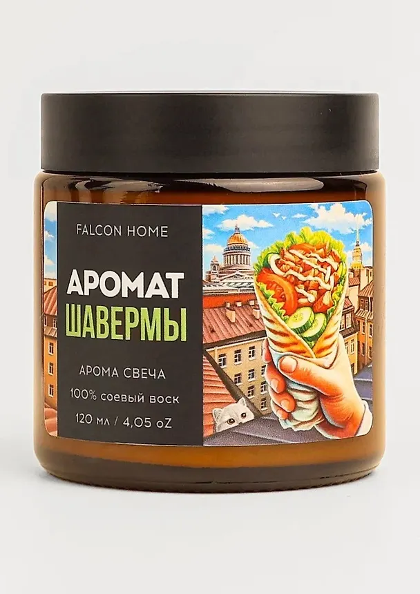 Свеча с ароматом шавермы — это оригинальный сувенир, который не только напомнит о знаменитом петербургском деликатесе, но и подарит улыбку и яркие эмоции.