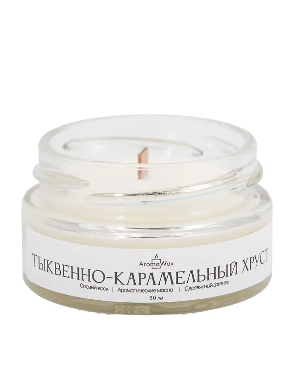 Объём: 50 мл — компактный размер для небольших помещений или пробного знакомства с ароматом. Аромат: «Тыквенно‑карамельный хруст» — сладкий, тёплый, с многослойной структурой: верхние ноты: апельсиновая цедра, сливки; средние ноты: сливочное масло, тыква; базовые ноты: карамель, кленовый сироп, орех пекан, ваниль. Время горения: до 15 часов — длительное н