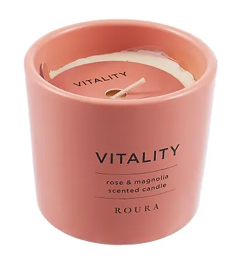 Очень благородный цветочный аромат магнолии и розы . Обволакивающий , теплый , создающий уют и действительно жизнеутверждающее настроение , что и подразумевает название Vitality . Классная идея : определенная свеча -определенное состояние . Красивый керамический подстаканник -все со вкусом . Очень довольна . Теперь хочу другие свечи из этой же серии. Достойные !