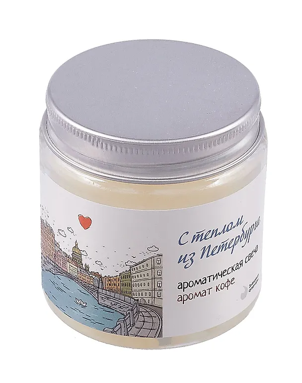 Ароматическая свеча в стеклянной баночке СПб С теплом из Петербурга (кофе) наполняет дом уютом северного города. Тёплый кофейный аромат напоминает о маленьких питерских кофейнях, помогает расслабиться после напряжённого дня и создать атмосферу спокойствия и умиротворения.