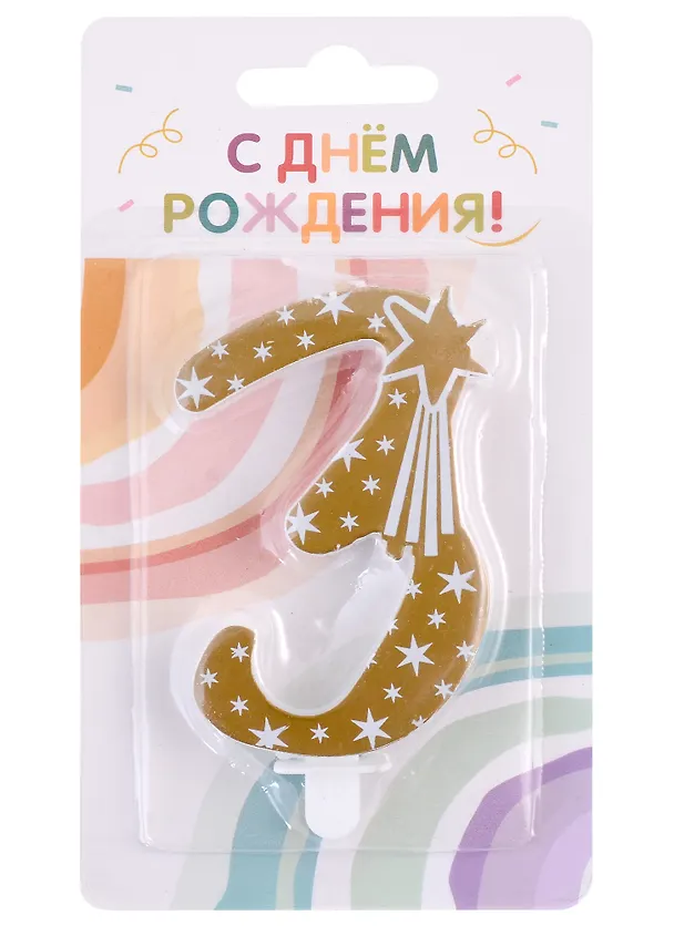 Свеча для торта цифра 3 (7,5 см) (золото)