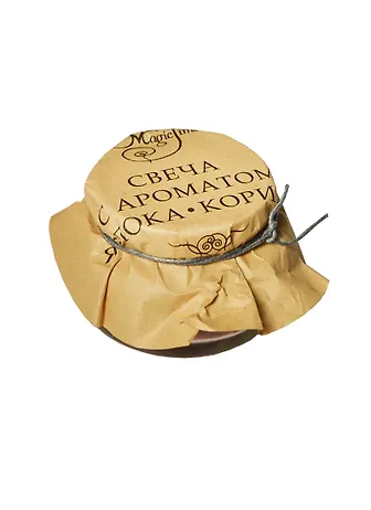 Свеча в стеклянной банке с бумажной крышкой яблоко и корица (32807) (7,2х7,2х5,1)