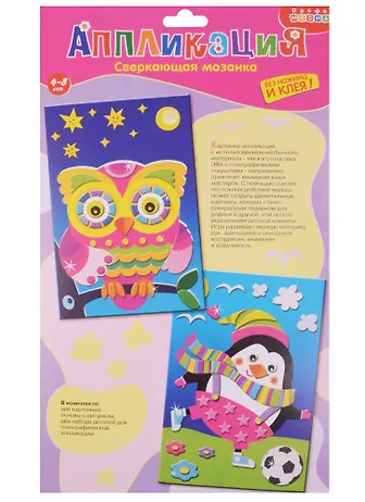 Сверкающая мозаика Сова и Пингвин (3191) (Аппликация) (набор для творч.) (4+) (упаковка)