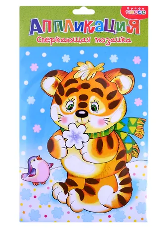 Праздничная и яркая аппликация, состоящая из красочных деталей, отличающихся по форме и размерам. Готовое изделие эффектно переливается всеми цветами радуги, благодаря покрытию деталей мозаики голографической плёнкой, придающей им необыкновенный блеск.