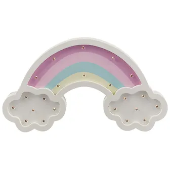 Поставьте этот нежный светильник на прикроватную тумбочку или повесьте на стену, и вы будете видеть только хорошие сны. Облачка и радуга светятся благодаря двум мизинчиковым батарейкам, которые есть в комплекте. Сзади у радуги есть специальное крепление, чтобы его можно было повесить на стену.