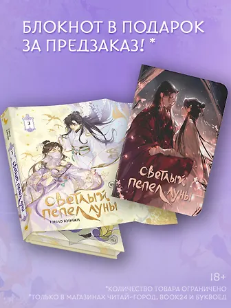 Подарочное издание третьей части выглядит потрясающе. Правда суперобложка менее привлекательна, чем в двух предыдущих, но компенсировала обычная обложка с арфой Ли Сусу - Чон Юй. Увлекательные форзацы и красивая ленточка ляссе. Печалит, что также страниц стало меньше, чем в двух предыдущих и качество бумаги буквально такое же тонкое. Внутренние иллюстрации также отличаются от других частей. Сама история потрясающая и насыщенная. Читать интересно, как Таньтай Цзинь цинично пытается вернуть свою Е Сиу и как его характер меняется, с осознанием, что она же Ли Сусу, с какой нежностью и трепетом он к ней относится.