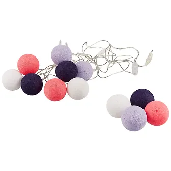 Красивое освещение сделает любую комнату милой и уютной. Чтобы добавить света в комнату, выберите гирлянду с шариками лавандовых и сиреневых оттенков. Они напоминают маленькие клубочки ниток. Стоит включить гирлянду в розетку, как шары засветятся изнутри нежным жёлтым светом. Яркая гирлянда украсит вашу гостиную или спальню.