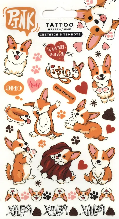 Набор временных детских татуировок поможет создать яркие, красочные образы для вашего ребенка. Они принесут массу позитива и украсят любой праздник или вечеринку! Набор детских татуировок отличает яркость красок и высокое качество художественного исполнения. Нанести татуировку очень просто: сними прозрачную пленку, приложи рисунок лицевой стороной на сухой участок кожи, плотно прижми смоченной губкой, подожди 30 секунд И татуировка готова! Ты можешь менять образ так часто, как пожелаешь. И что самое интересное, они светятся в темноте! Для удаления татуировки нанесите на участок кожи с картинкой крем или масло, через несколько минут смойте водой. Для зарядки необходимо положить их под лампу и