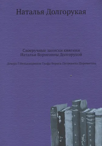 Наталья Борисовна Долгорукова -знаменитая мемуаристка XVIII века, одна из первых русских писательниц, дочь графа Б. П. Шереметева, жена И. А. Долгорукова, бабка И. М. Долгорукова.« Своеручные записки княгини Натальи Борисовны Долгорукой » до сих пор остаются памятником литературы той эпохи. Воспроизведено в оригинальной авторской орфографии издания 1913 года.