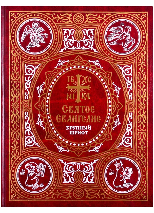 Издательство Сретенского монастыря выпустило Святое Евангелие на русском языке, напечатанное крупным шрифтом. Издание большого формата содержит церковные зачала и заставки с изображениями Евангелистов. Использован твердый переплет с тиснением золотой фольгой, качественная офсетная бумага.