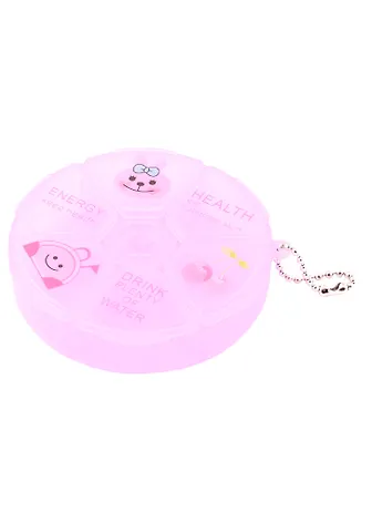 Таблетница с цепочкой круглая 6 секций Зверюшки Keep health (пластик) (8х8)
