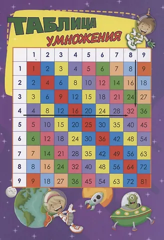 Таблица умножения нужна всем, ведь выучив ее один раз, можно пользоваться своими знаниями всегда, выполняя устный счет и не прибегая к помощи калькулятора. Удобный формат таблицы, выполненный в ярком дизайне, можно разместить над рабочим столом ученика, и это поможет ему быстро выучить ее.
