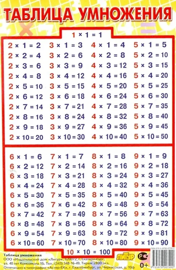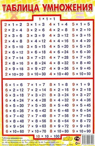 Учебный плакат для детей поможет в изучении таблицы умножения.
