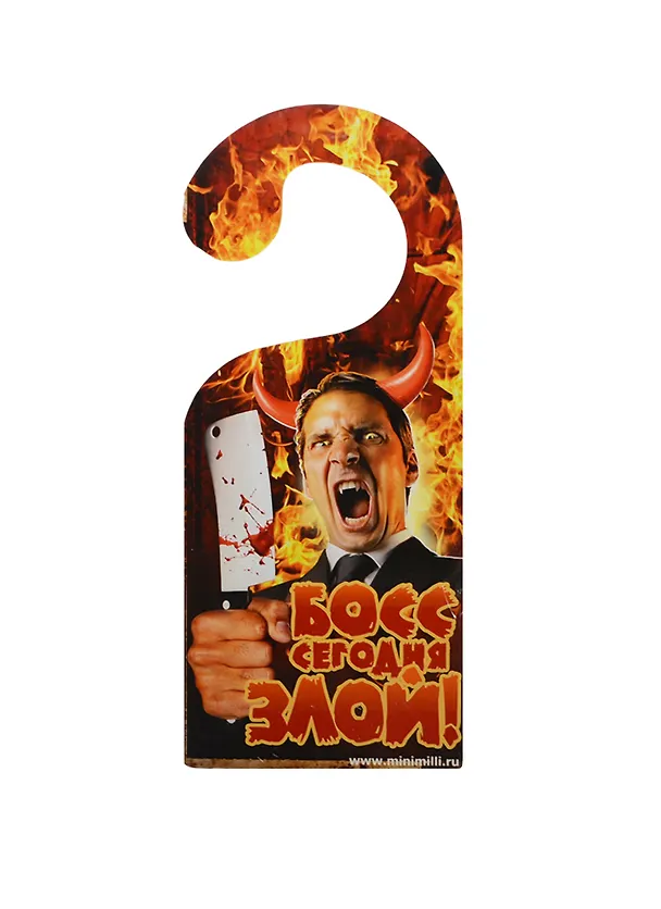 Всегда и везде подчиненные имеют привычку обсуждать поведение начальства, в большинстве своем, приходя к выводу о перевесе в сторону отрицательных качеств босса. И не надо удивляться тому, что Вас босс знает об этом! Поэтому давайте относиться к жизненным трудностям с юмором! Подарите всем отделом своему боссу такую табличку, это обязательно рассмешит и развеселит Вашего начальника! Ведь дружеская обстановка, взаимопонимание – это довольно важные факторы продуктивного взаимодействия на работе! Кроме того, можно незаметно повесить такую табличку на дверь в кабинет начальника! Но убедитесь, что это не повлечет особых последствий!