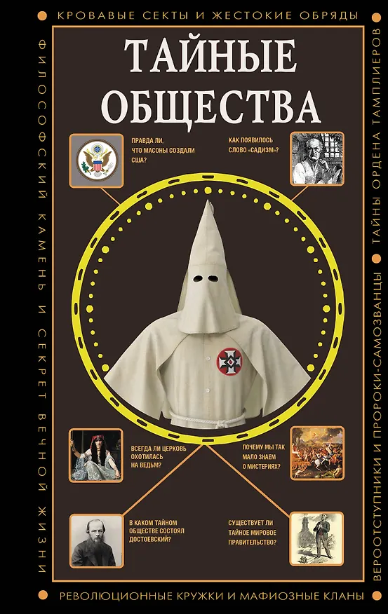 Книга рассказывает, как через века и тысячелетия передавался древний "гнозис" — сокровенное знание, поведанное богами первым людям. О том, кто такие катары, розенкрейцеры, мартинисты и иллюминаты; чем отличаются карбонарии от кальдерариев; какими делами занимались масоны в России и так ли уж страшны жидомасоны. Автор раскрывает секреты средневековых ведьм и алхимиков, описывает традиционные изуверские российские секты: скрытников, бегунов, хлыстов и скопцов; их зловещие обряды, связанные с членовредительством и даже убийствами. Отдельные главы посвящены криминальным сообществам, тайнам нацистского Рейха, современным сектам и закрытым клубам "для избранных".
