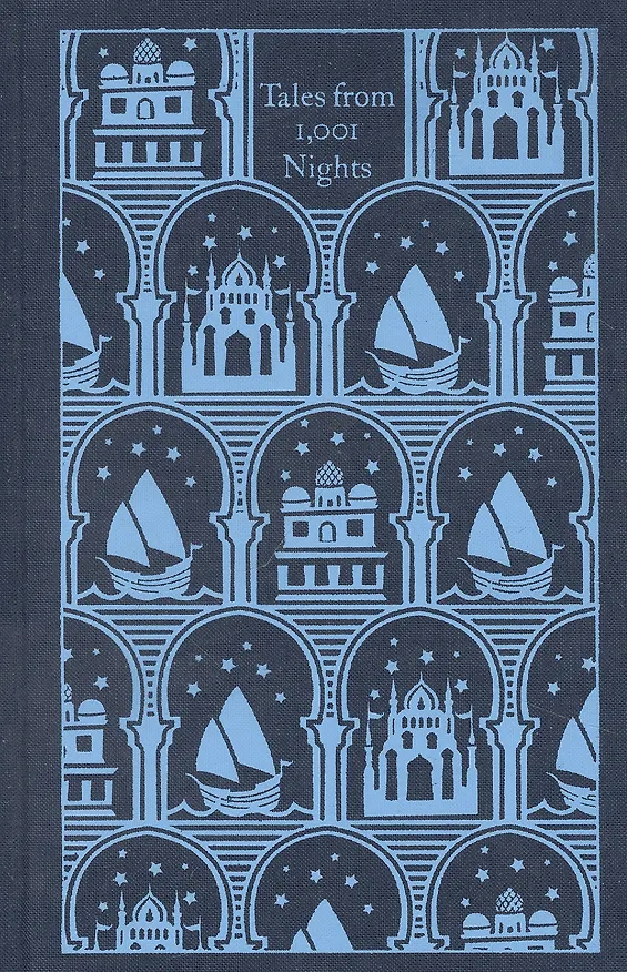 Every night for three years the vengeful King Shahriyar sleeps with a different virgin, executing her next morning. To end this brutal pattern and to save her own life, the vizier's daughter, Shahrazad, begins to tell the king tales of adventure, love, riches and wonder - tales of mystical lands peopled with princes and hunchbacks, the Angel of Death and magical spirits, tales of the voyages of Sindbad, of Ali Baba's outwitting a band of forty thieves and of jinnis trapped in rings and in lamps. The sequence of stories will last 1,001 nights...