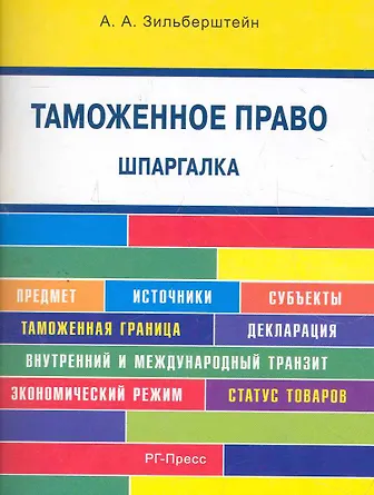 Анастасия Зильберштейн «Таможенное право. Шпаргалка: учебное пособие» и выбрать удобный способ его получения: самовывоз, доставка курьером