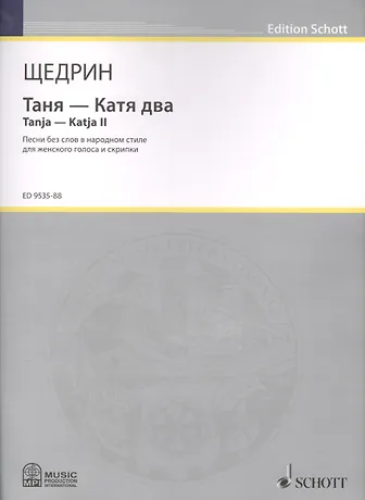 «Таня — Катя два», песни без слов в народном стиле для женского голоса и скрипки, написаны Р. Щедриным в 1998 году. Продолжительность исполнения около 8 минут. Издание адресовано профессиональным музыкантам, студентам и преподавателям средних и высших музыкальных учебных заведений. Книга издана по лицензии издательства Schott Music GmbH&Co.KG (Германия). В России публикуется впервые