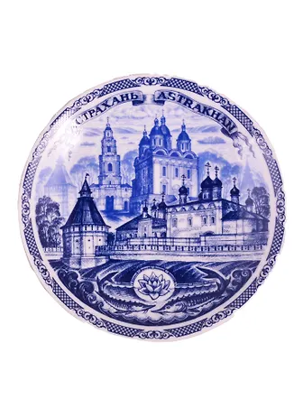 Тарелка Астрахань (фарф.синий рис.D10) (10-7-82)