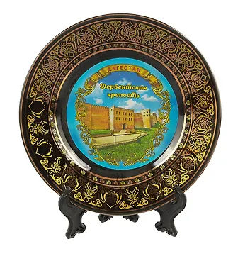 Тарелка Дагестан Дербент Крепость (фарфор D15 цв.черный)