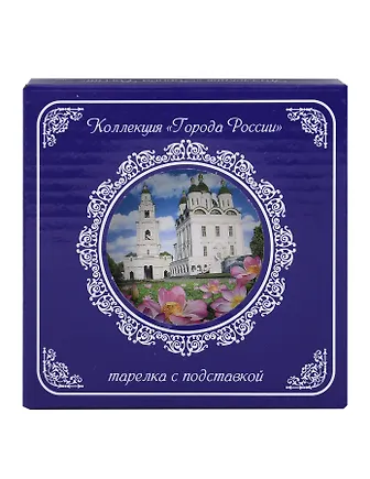 Тарелка декоративная с подставкой Кремль и Лотосы (фарфор) (10см) (Астрахань) (10-K8-82-3)