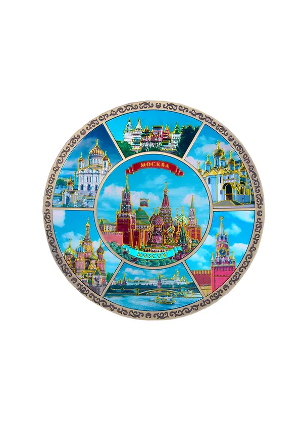 Прелестная сувенирная тарелка с самыми известными достопримечательностями столицы нашей страны - города Москвы. Покупала данную тарелочку себе, я их коллекционирую. В сувенирных лавках самой Москвы такая тарелка стоит в два раза дороже, чем на сайте данного магазина. Увидев ее в каталоге сувениров, я тут же добавила ее а корзину, применила бонусы и закзала по отличной цене. Пришла тарелка быстро, хорошо упакованной и без деффектов. Товар выполнен замечательно из качественной керамики, покрытие тарелки яркое и красочное с позолоченными оконтовками, а также приятное на ощупь. Подставка приделана к тарелке крепко, она держиться на ней хорошо. Небольшой размер тарелки позволил ей уместиться на полочке вместе с аналогичными ей сувенирами. Товар отличный, покупкой довольна. Рекомендую!