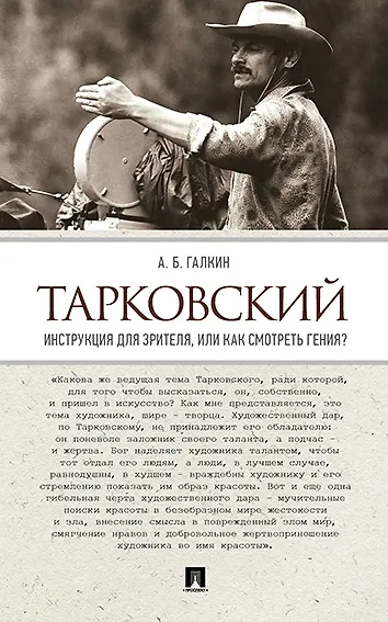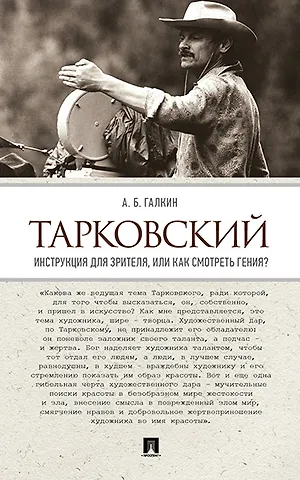 В книге А. Б. Галкина «Тарковский. Инструкция для зрителя, или Как смотреть гения?» исследуется творчество знаменитого кинорежиссера Андрея Тарковского в контексте русской и мировой культуры. Все семь фильмов Тар- ковского, а также его театральная постановка шекспировского «Гамлета» в Театре Ленком, по мнению автора, образуют стройное художественное целое, подобное фуге Баха. Из фильма в фильм переходят излюбленные режиссерские образы, идеи, лейтмотивы, культурные ассоциации и взаимодействуют друг с другом, точно голоса и мелодии одной грандиозной кинематографической симфонии. А. Б. Галкин расшифровывает сложную символику и мифологические подтексты, заложенные в фильм