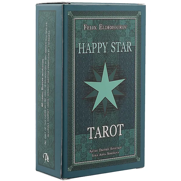Таро Счастливой Звезды – колода созданная на основе авторской системы Феликса Эльдемурова «5 Крестов», описанная в фундаментальном трехтомнике «Арканология». Художник Дмитрий Швецов, идея Анна Симонова, автор названия колоды Инна Орещенкова. Основа Таро Счастливой Звезды – классическая колода Райдера-Уэйта, с прорисованными младшими Арканами, но с логически обоснованными автором изменениями в нумерации карт. Колода состоит из 78 классических Арканов и дополнительных 2х карты-бланки. Особенность колоды – Старшие Арканы не пронумерованы, что удобно для последователя любой Школы Таро. Подробная сопроводительная брошюра дает ключи к использованию этой замечательной колоды Таро.