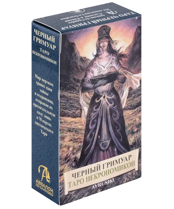 Гримуа́р, или гримория — средневековая книга, в которой, как считалось, описываются магические процедуры и заклинания для вызова духов или содержащая какие-либо колдовские заклинания. Таинственное Таро Черных гримуаров берет свое название из этой книги и представляет собой захватывающие и тревожные видения темной стороны человеческой психики. Колода приглашает Вас в путешествие в мир подсознания, где за мрачной неизвестностью и леденящим ужасом самых темных уголков души и разума, Вы получаете ответы и находите источники своих страхов и сомнений.