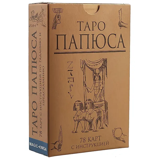 Представляем вашему вниманию одну из классических систем Таро, разработанную Папюсом и названную в его честь. За идологическую основу своей колоды Жерар Анкосс взял одну из легенд о происхождении карт Таро - Египетскую - и прибавил к ней свои познания в каббале и в оккультизме, коих у него скопилось немало. Таро Папюса нарисовано в египетском стиле. К каждой карте из Старших Арканов добавлены символы и буквы, помогающие лучше понять ее смысл - буква из французского алфавита, из еврейского, из санскрита, египетский иероглиф и символ из "Археометра" Сент-Ив д’Альвейдра. На картах "Суд" и "Шут" (Сумасшедший) египетские иероглифы отсутствуют.