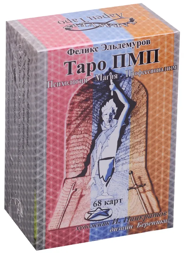 Колода карт Таро PMP "Психология. Магия. Профессионализм" состоит из 68 карт, созданных Феликсом Петровичем Эльдемуровым. Эта колода предназначена как для предсказательной, так и для магической работы. Таро PMP рассматривает личность и окружающую реальность в 3 аспектах: материальном, психическом и магическом. В состав колоды входят 3 набора Старших Арканов (по 22 карты), по одному для каждого аспекта и 2 дополнительные карты - Анимус и Анима. Лучше, если вы уже имеете опыт в обращении с картами Таро и вам известны классические варианты их истолкования. Рисунки колоды выполнены в гротескной, сюрреалистической манере, несколько отличной от канона. Это диктуется ее спецификой. Карты PMP - инст