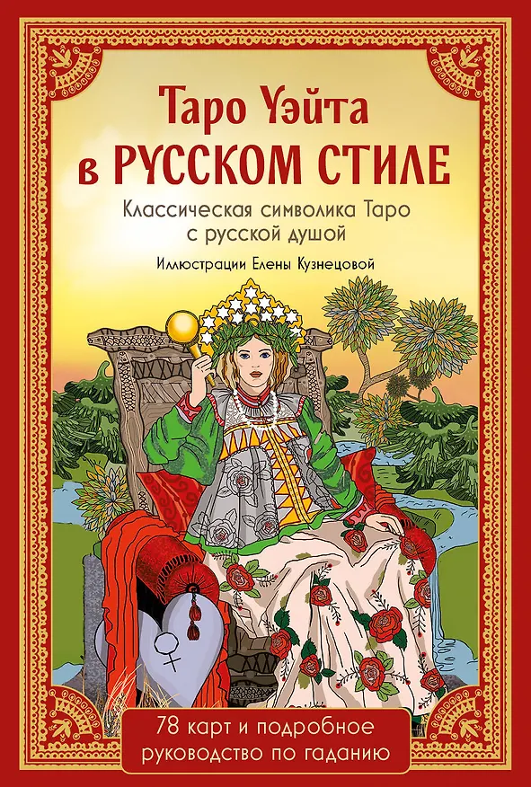 Основанная на классических картах таро Уэйта и сохранившая все глубокие, зашифрованные в них смыслы, эта колода таро наделена русской душой. Здесь живут герои знакомых с детства сказок и былин: добрые молодцы и красные девицы, купцы и боярыни, цари, царевны и, конечно, Иван-Дурак, который при ближайшем рассмотрении, оказывается главным мудрецом. Целая галерея ярких национальных характеров, написанных художницей Еленой Кузнецовой - это новое прочтение знаменитого Таро Уйэта. А если карты опираются на родную культуру, то их ответы будет легче истолковать, без труда уловить подсказки, которые они несут. Колода в изысканном подарочном оформлении для коллекционеров и всех любителей волшебного ми