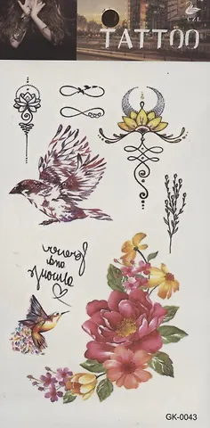 Тату Цветы и тексты, 2 вида (GK-0043)(GK-0077)(9,7*19,8)