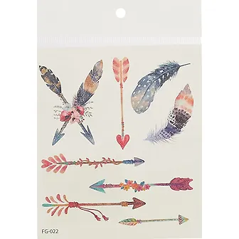 Попробуйте угадать, какой набор переводных татуировок получите именно вы – с крыльями и феей, стрелами или перьями.