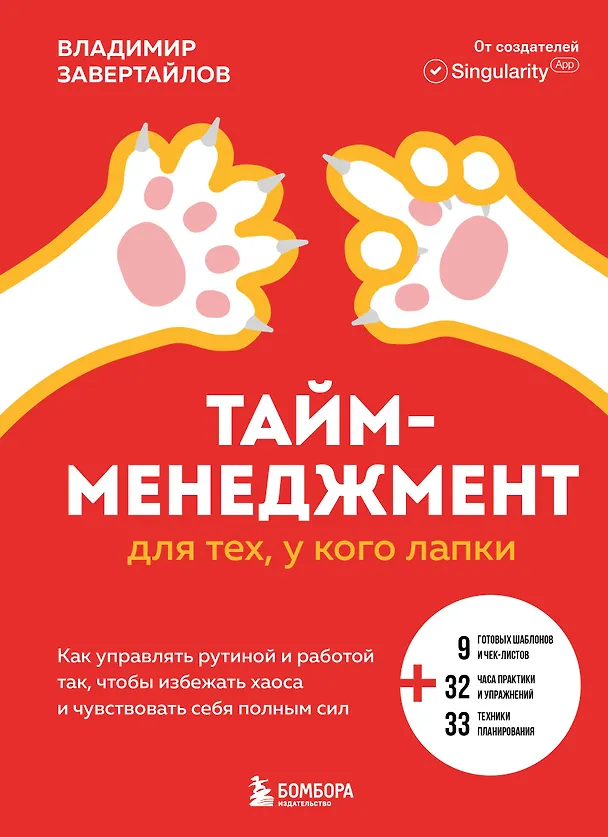 Прекрасная книга! Давно искала что-то стоящее по тайм-менеджменту, потому что с ним имеются проблемы. Книга Владимира Завертайлова «Тайм-менеджмент для тех, у кого лапки» настоящая находка! Все написано простым и понятным языком с юмором, но при этом имеет много интересных вещей и полезных техник. Читается легко, а материал усваивается быстро и надолго. Спасибо огромное за такую чудесную книгу и спасибо команде, что проделали столько исследований для написания её)
