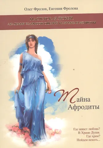 О чем мечтает современная женщина... чтобы ее желания сбывались, а мужчины приносили весь мир к ее ногам. Вы скажете: "Так не бывает!" Отчасти Вы правы, ибо внешняя красота без внутреннего обаяния и чувственного огня в глазах имеет ценность малую. В этом предстоит убедиться и главной героине нового увлекательного романа Олега и Евгении Фроловых "Тайна Афродиты".
