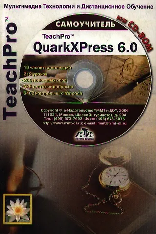 TeachPro QuarkXpress 6.0 - это мультимедийный, интерактивный, обучающий видео курс на CD-ROM по работе с одной из популярных программ для создания, редактирования и оформления текстовых документов - TeachPro QuarkXpress 6.0 Процесс обучения предельно прост и максимально приближен к занятиям с преподавателем. Вы видите на экране «фильм», как работать с программой в различных режимах и слышите пояснения «преподавателя». Вам постоянно приходится отвечать на контрольные вопросы «преподавателя», указывая на соответствующие поля на экране, или выполнять определенные тестовые задания. В случае затруднения - система поможет подсказкой. Имеется удобная поисковая система и возможность навигации по зак