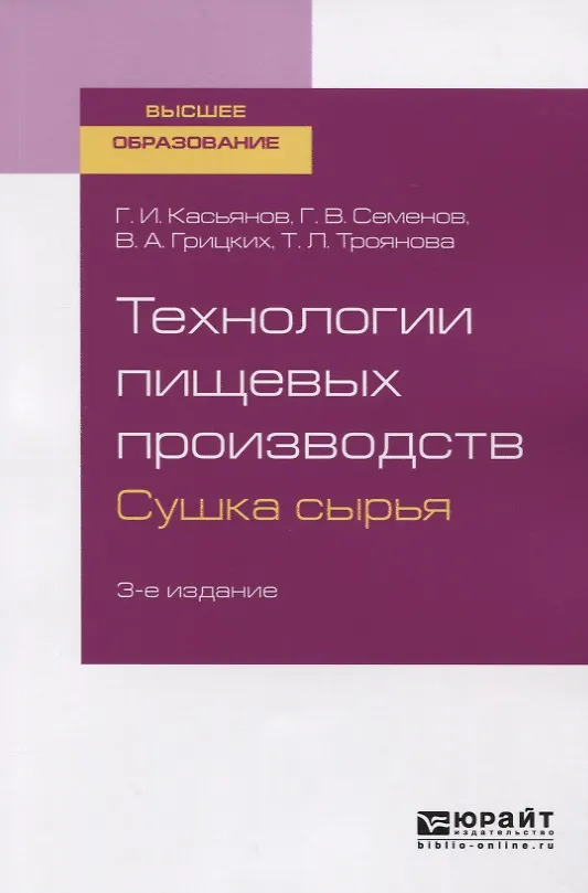Технологии пищевых производств. Сушка сырья. Учебное пособие для вузов