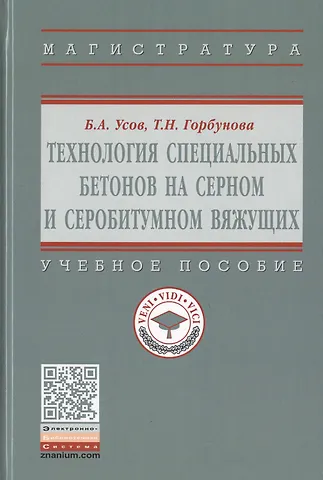 Издание является учебным пособием для преподавания и изучения в технических высших учебных заведениях современных технологий производства специальных бетонов на серном и серобитумном вяжущих. Приведены результаты зарубежных и отечественных исследователей по применению серы в конструкциях, изделиях, работающих в агрессивной среде, и виды модификации дорожных битумов и асфальтобетонов.Соответствует требованиям федеральных государственных образовательных стандартов высшего образования последнего поколения.Для студентов, обучающихся по направлениям подготовки 08.03.01 и 08.04.01 "Строительство" и специальности 08.05.01 "Строительство уникальных зданий и сооружений", а также для аспирантов. Полез