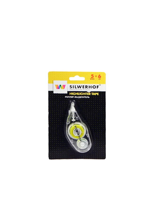 Текстовыделитель лента 5мм*6м желтый, блистер, Silwerhof