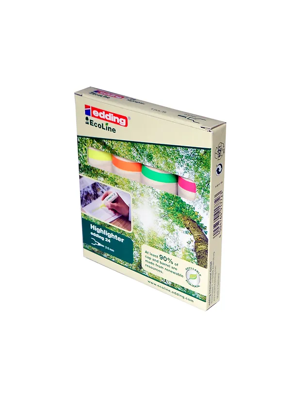 Текстовыделители 04цв "EcoLine" 2-5мм, возмож.дозаправки, к/к, Edding